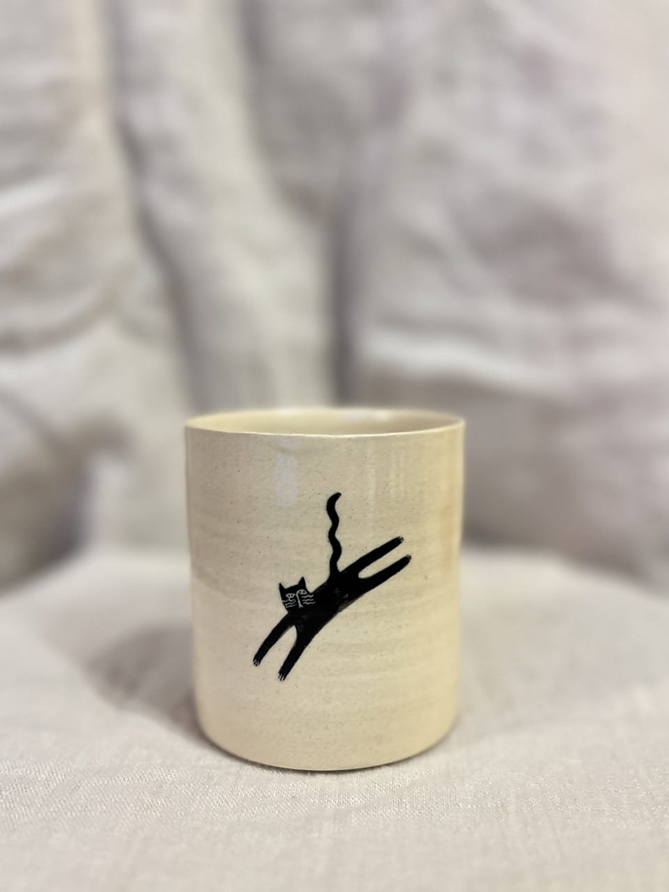 Kubek został wytoczony ręcznie oraz poszkliwiony szkliwem transparentnym. Malowany ręcznie.