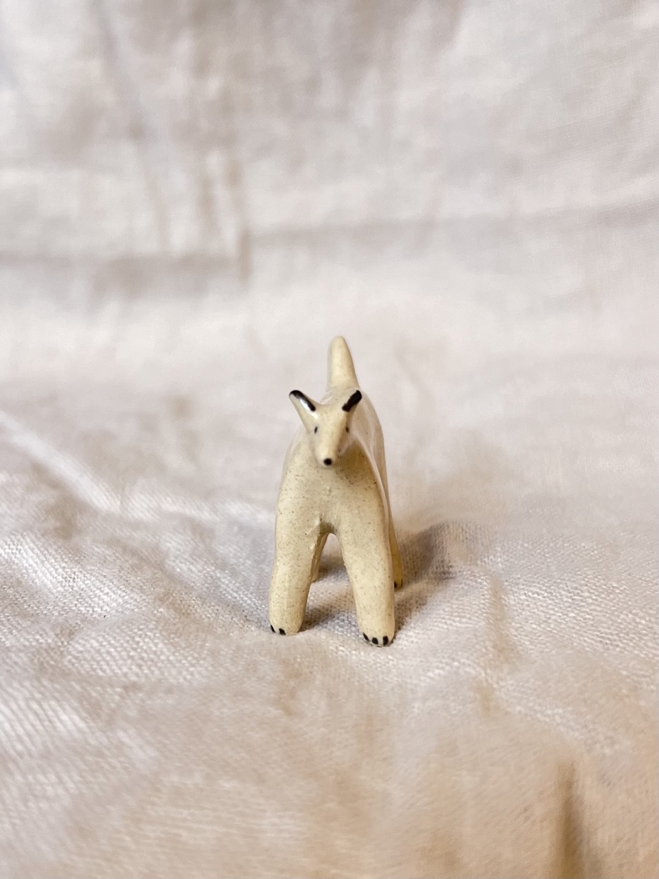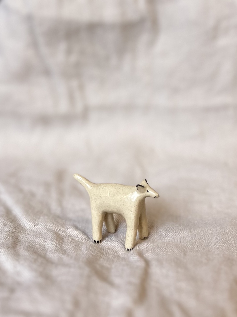 Ręcznie lepiona i malowana figurka pieska. Poszkliwiona szkliwem transparentnym.
