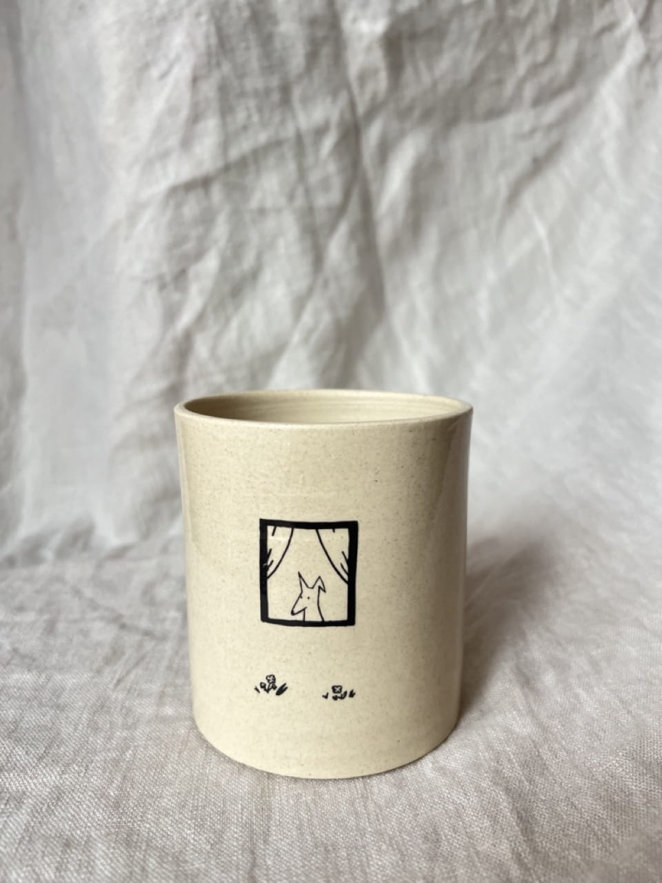 Kubek został wytoczony ręcznie oraz poszkliwiony szkliwem transparentnym. Malowany ręcznie.